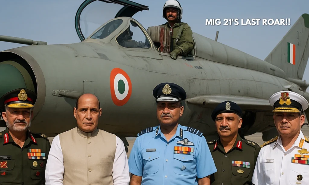 आसमान में अपनी गर्जना से दुश्मन को थर्राने और कई बार उसे धूल चटाने वाला लड़ाकू विमान मिग-21 अब उड़ान नहीं भरेगा। भारतीय वायुसेना के यह पहले सुपरसोनिक विमान शुक्रवार को आखिरी बार आकाश में गरजे। 1963 से वायुसेना में शामिल रहे मिग-21 को एयरफोर्स स्टेशन पर यादगार तरीके से अलविदा कहा गया और आखिरी सलामी दी गई। विदाई समारोह के दौरान चंडीगढ़ में मिग-21 के साथ जगुआर और सूर्य किरण एयरोबेटिक टीम ने भी फ्लाईपास्ट किया. आकाश गंगा स्काई डाइवर्स की टीम ने करीब चार हज़ार फीट की ऊंचाई से छलांग भी लगाई.मिग-21 की विदाई पर खुद वायुसेना प्रमुख एयर चीफ मार्शल एपी सिंह कॉकपिट में बैठे. पिछले महीने भी उन्होंने राजस्थान के नाल एयरबेस में मिग-21 उड़ाया था. विमान की इस आखिरी उड़ान को स्क्वॉड्रन लीडर प्रिया शर्मा ने लीड किया. समारोह में 1965 और 1971 के भारत-पाकिस्तान युद्धों के खास पलों को रीक्रिएट किया गया. मिग-21 की 23वीं स्क्वॉड्रन जिसे पैंथर्स भी कहा जाता है, विक्ट्री फॉर्मेशन में उड़ान भरी. इसके बाद मिग-21 ने बादल फॉर्मेशन में उड़ान भरी. उनके साथ तेजस ने कदमताल की और सामरिक संदेश दिया कि मिग-21 की जगह अब स्वदेशी तेजस ने ले ली है. रक्षा मंत्री राजनाथ सिंह, चीफ ऑफ डिफेंस स्टाफ अनिल चौहान, वायुसेना प्रमुख एयर चीफ मार्शल एपी सिंह, सेना प्रमुख जनरल उपेंद्र द्विवेदी व नौसेना अध्यक्ष एडमिरल दिनेश कुमार त्रिपाठी भी मौजूद थे।